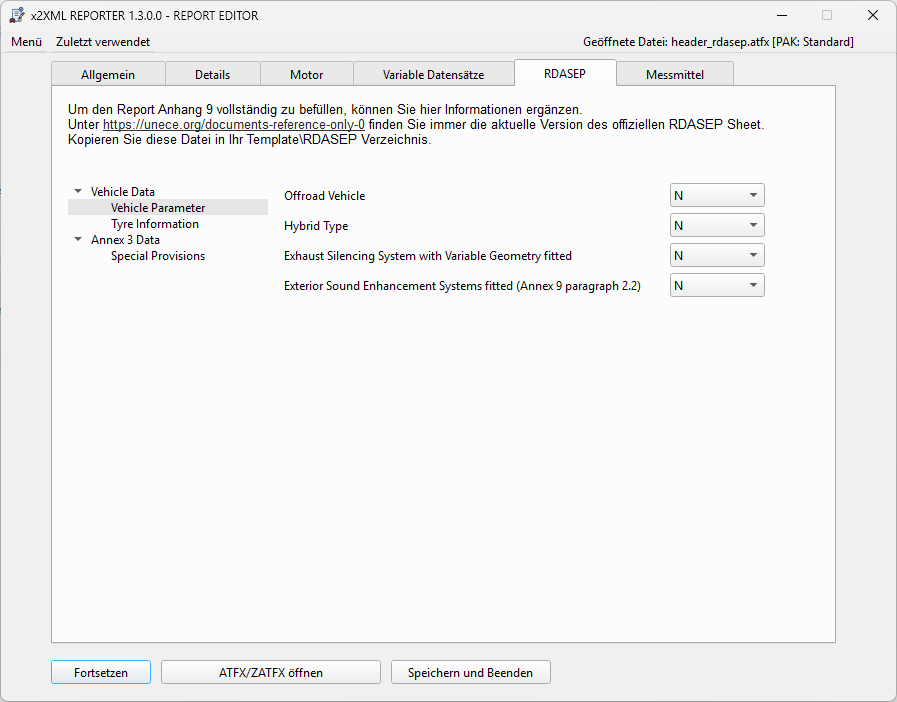 - Da nicht alle Variablen in der Messdatei für das RDASEP-Sheet zur Verfügung stehen, können Sie diese Informationen im Report Editor ergänzen.
